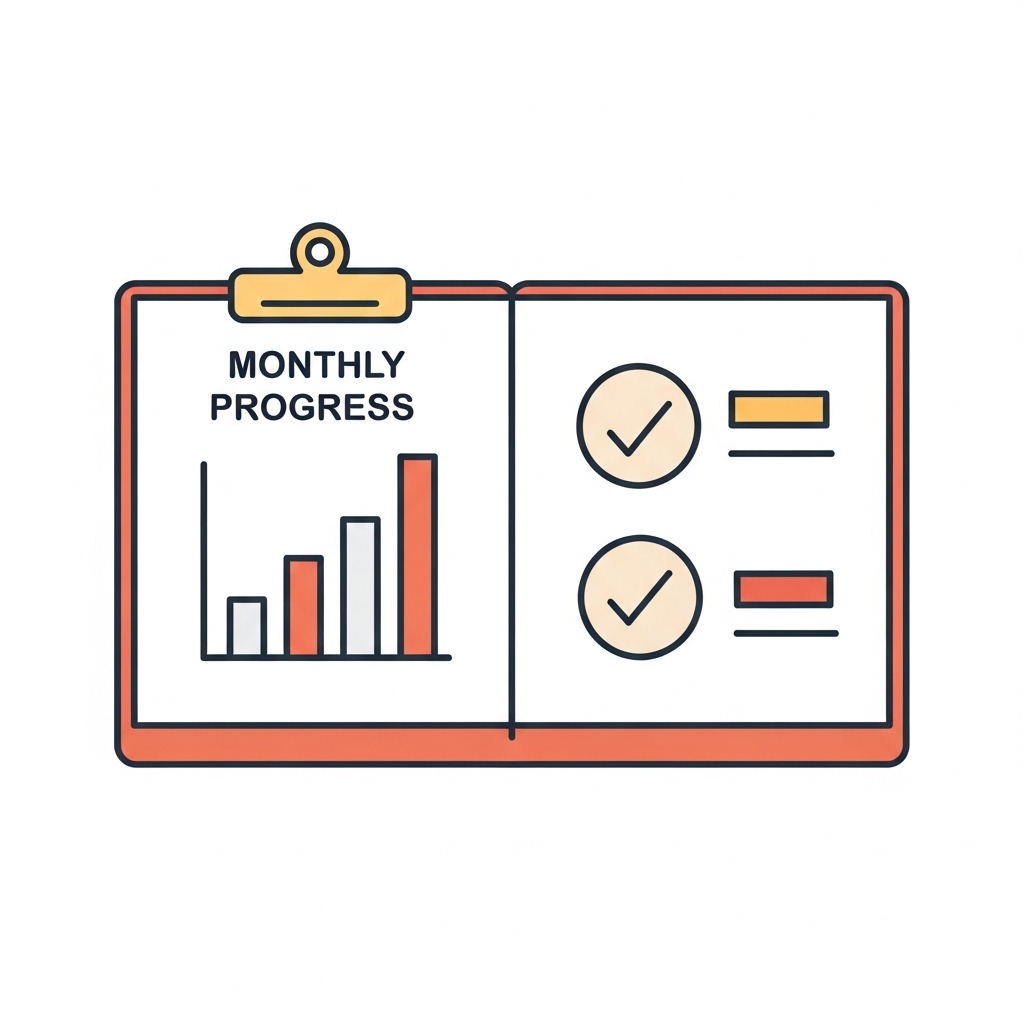 - 매월 RIIE 프레임워크 기준으로 영역별 성장 및 변화 추적를 분석합니다.